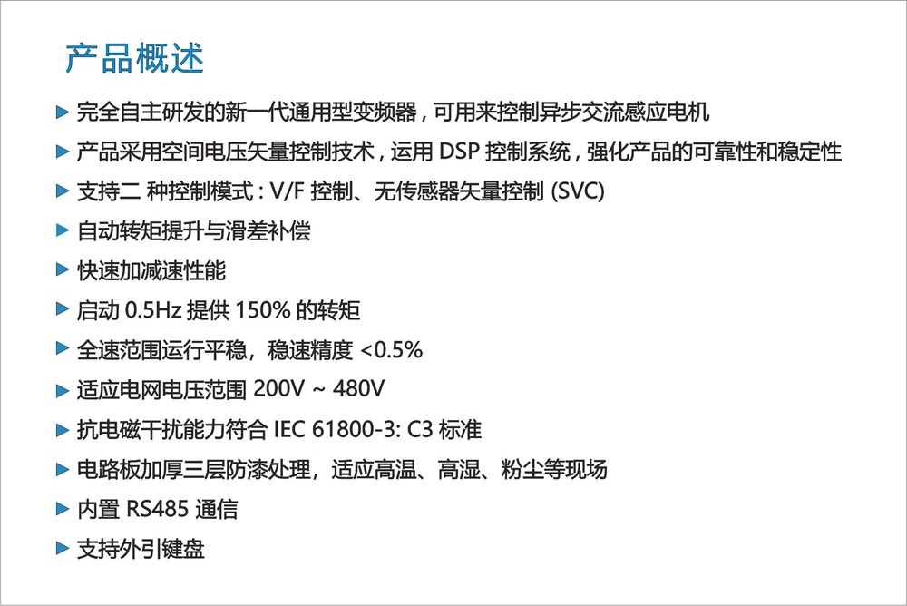 SN160MN系列是一款小型紧凑型的通用型变频器,支持开环矢量控制,PID,多段速,简易PLC等常用功能。