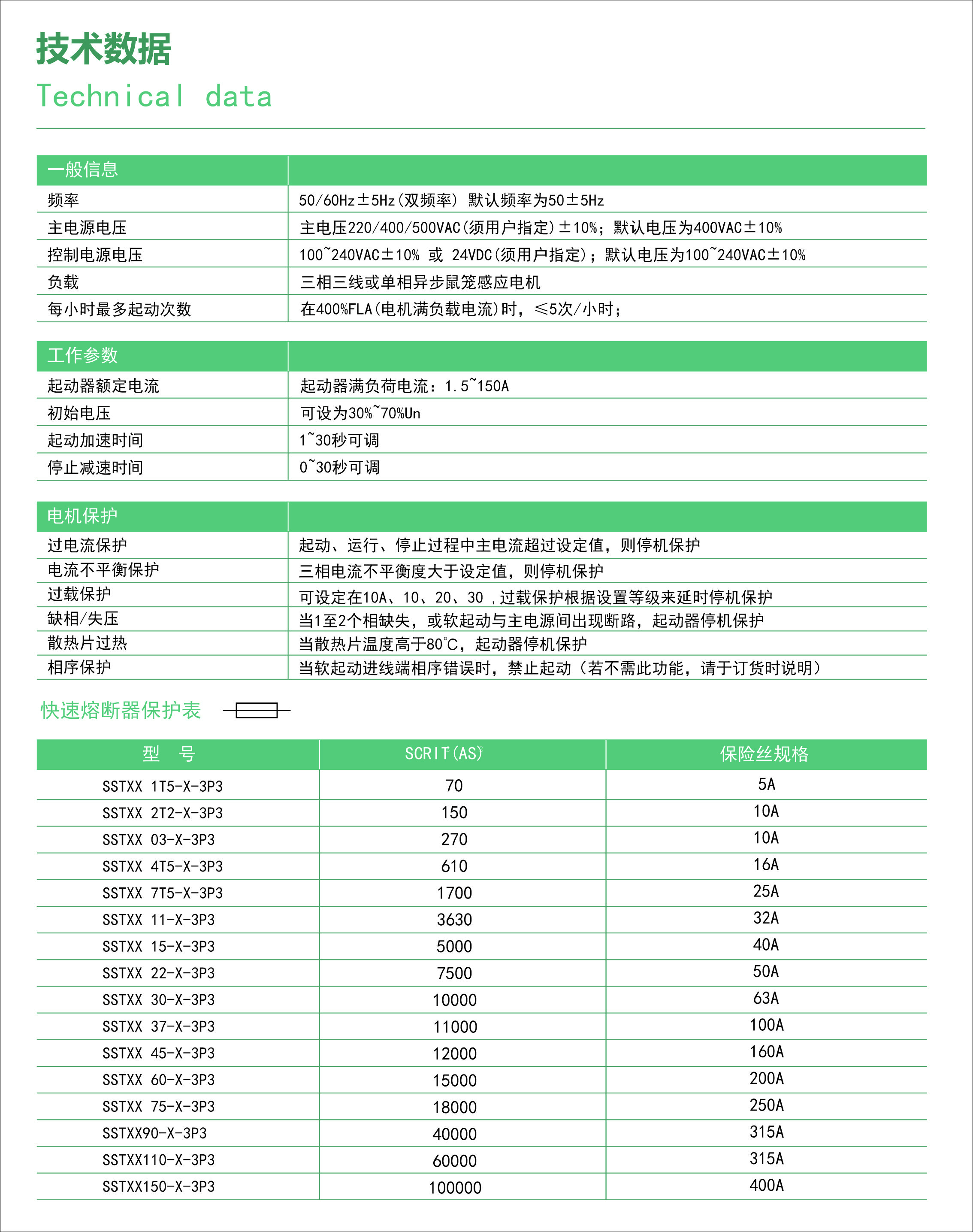 SST-A系列软起动器是一款数字式电机软起动产品,可控制电机在起动过程中平滑加速、停止过程中平滑减速,并提供了针对电动机及产品自身的保护功能。是传统星三角式及自耦降压式起动器的最佳升级替代产品。